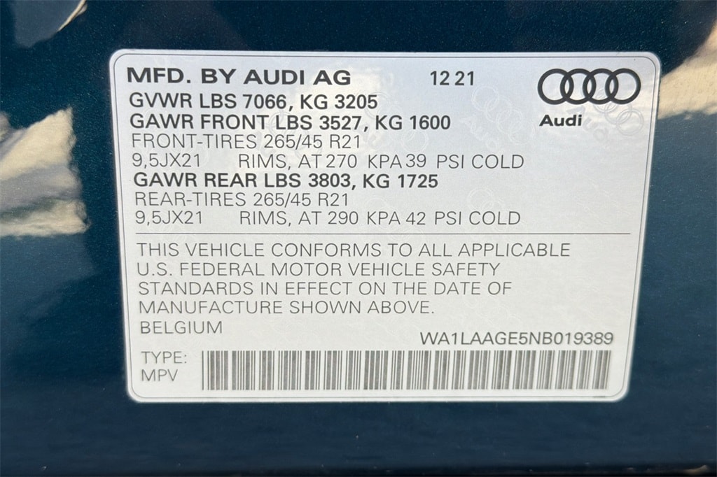 2nd Charge Port (AC Passenger Side), Adaptive Cruise Assist w/Lane Guidance, Ambient Interior Lighting Package, Audi Phone Box w/Wireless Charging, Bang & Olufsen 3D Premium Sound System, Black Optic Exterior Package, Black Optic Package, Dynamic Orange Brake Calipers, Heated Rear Seats, Illuminated Front & Rear Aluminum Door Sills, Matrix-Design LED Headlights, Premium Plus Package, Top View Camera System, Traffic Sign Recognition, Ventilated Front Seats, Wheels: 21" Black 5-Double-Spoke Turbine-Design.