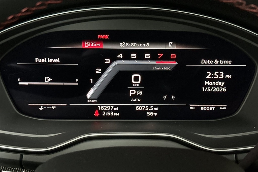 Audi Active Lane Assist, Audi Virtual Cockpit Plus, Bang & Olufsen 3D Sound System, Black Exterior Mirror Housings, Black Exterior Trim, Black Optic Package, Convenience Package, Hands-On Detection Steering Wheel, Leatherette Covered Center Console, Panoramic Sunroof, Premium Plus Package, Red Brake Calipers, S Sport Package, Sport Adaptive Air Suspension, Sport Rear Differential, Top View Camera System, Traffic Jam Assist, Wheels: 20" 5-V Spoke-Star Design.