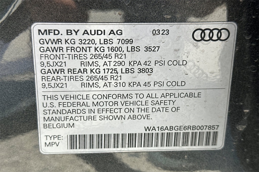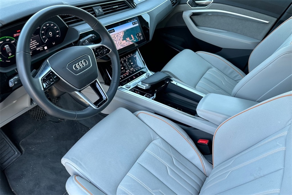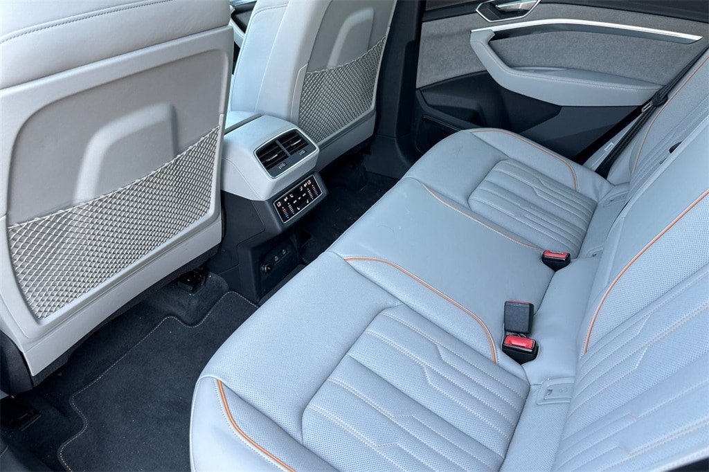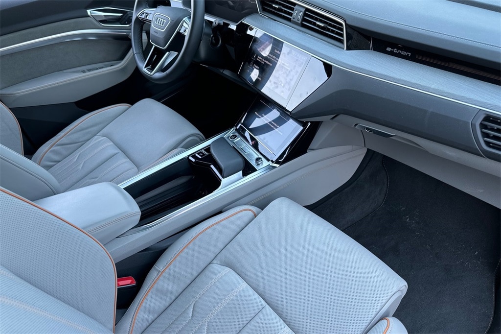 19.2 kW AC On-Board Charger, 2nd AC Charge Port (Passenger Side), 3-Spoke Steering Wheel, AC Charging Package, Animation for Headlights & Taillights, Anthracite Gray Audi Rings, Bang & Olufsen Sound System w/3D Sound, Black Exterior Mirrors, Black Headliner, Black Roof Rails, Body Color Grille, Digital Matrix LED Headlights, Dual Pane Acoustic Glass for Side Door Windows, Front Passenger Power Lumbar, Front Passenger Seat Memory, Head-Up Display, Heated Rear Seats, High-Gloss Black Front Grille & Mask, High-Gloss Black Rear Diffuser Inlay, High-Gloss Black Window Surrounds, High-Tech Mesh Anthracite Inlays, Illuminated Door Sills w/S Logo, Illuminated Front & Rear Aluminum Door Sill Inlays, Individual Contour Heated & Ventilated Front Seats, Intersection Assist, Launch Edition, Leather Trimmed Dash/Armrest/Center Console, LED Interior Lighting Plus Package, Manual Sunshades for Rear Doors, Park Assist Plus, Power Soft-Closing Doors, Prestige Package, Puddle Lights w/e-tron Edition Logo, S line Exterior, Single Frame Projector Lighting, Top View Camera System, Traffic Sign Recognition, Valcona/Milano Leather Seat Trim, Wheels: 21" Metallic Black Finish, Wireless Phone Charging Pad.