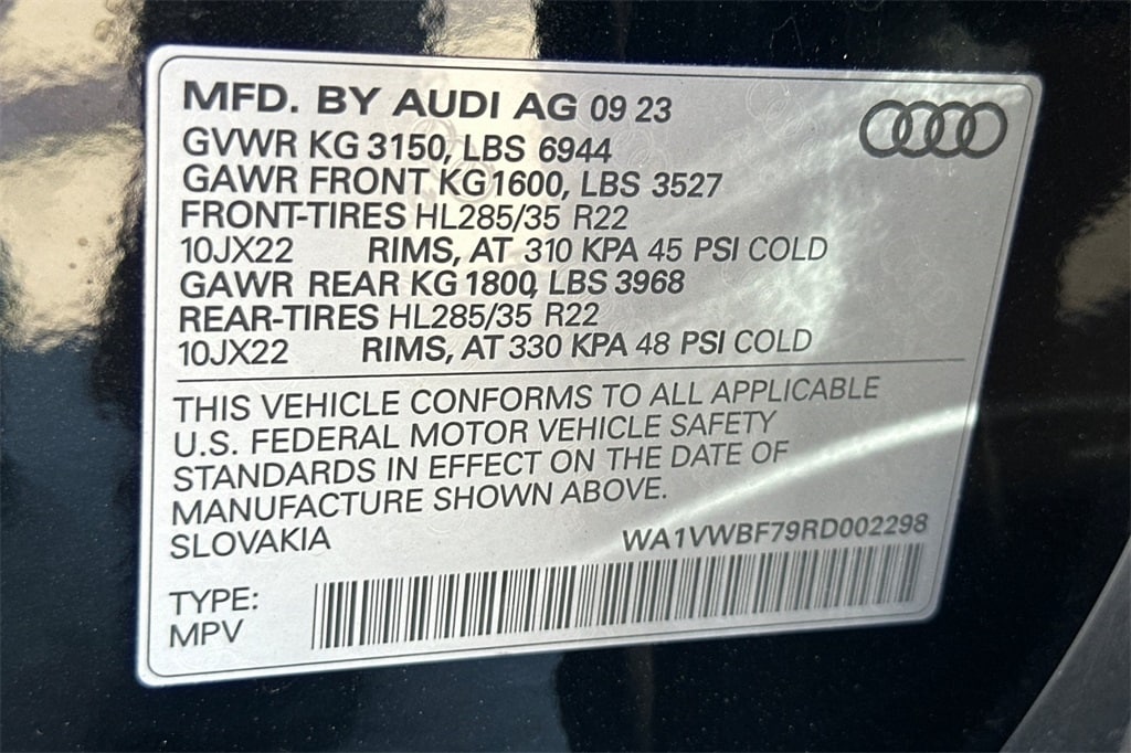 Mythos Black Metallic 2024 Audi SQ7 Prestige AWD.