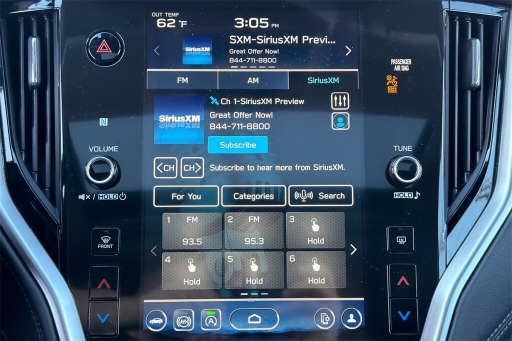 DriverFocus (Driver Monitoring System), Heated Steering Wheel, Power Moonroof, Power Moonroof & HSW & Navigation System, Radio: Subaru STARLINK 11.6" Multimedia Nav System.